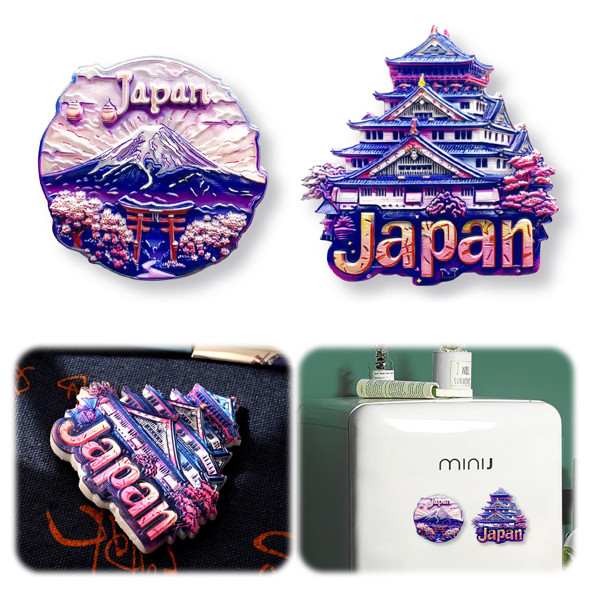 2個入り マグネットステッカー japanese souvenir 冷蔵庫 マグネット 日本土産 立体式 記念品 ランドマーククラフト マグネット かわいい アイデア コレクション アクセサリー(紫夢大阪+鳥居門と富士山) 送料無料