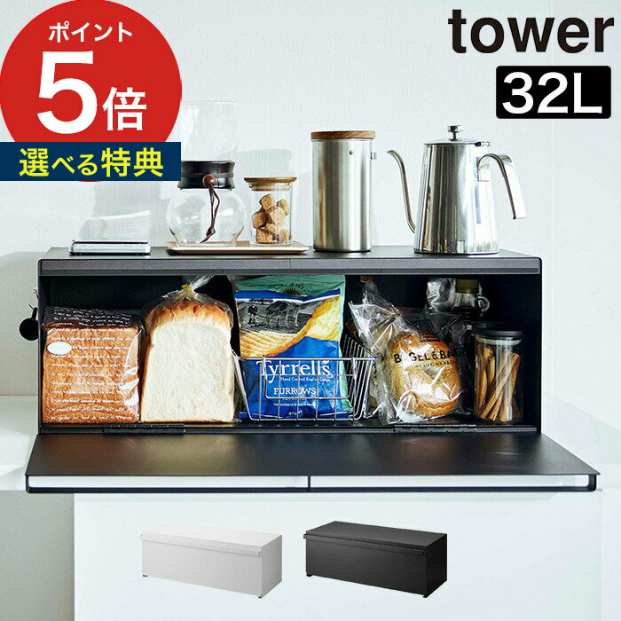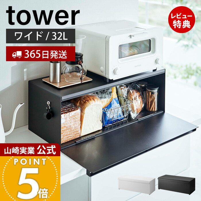 【365日出荷&豪華特典2個付き】山崎実業 ブレッドケース ワイド タワー tower 公式 パンケース ブレッドビン 32L 大容量 ストッカー 食パン 調味料ラック キッチン収納 隠す収納 ホワイト ブラック 3022 3023 タワーシリーズ
