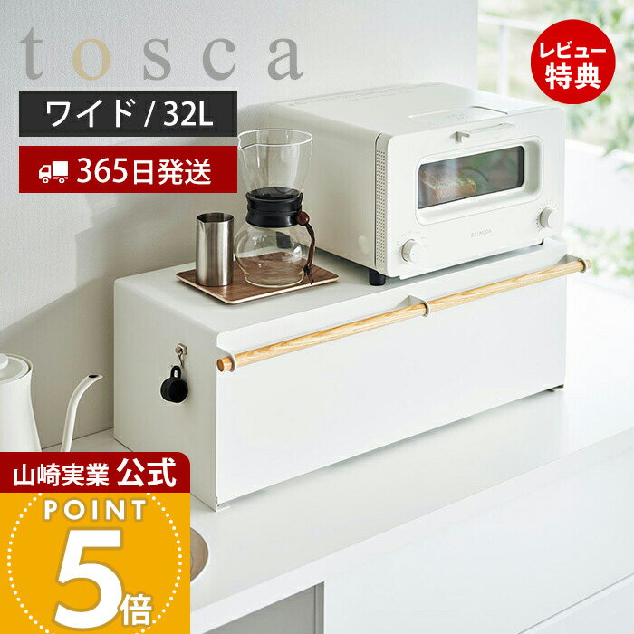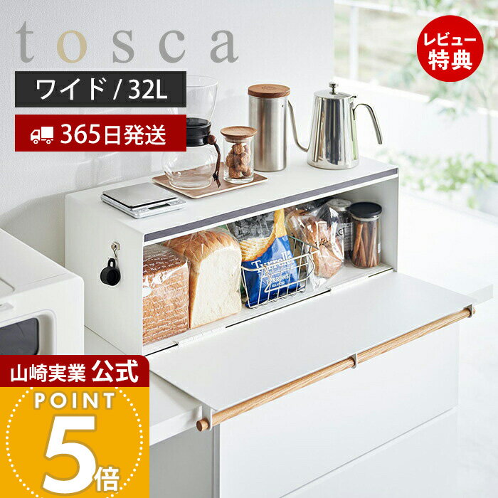 レビュー特典! 《 山崎実業 ブレッドケース トスカ ワイド 》 tosca 大容量 32L 1斤 パンケース 食パン キッチン収納 ラック ブレッドビン 調味料 ケース 保存 棚 ボックス BOX おしゃれ 隠す スチール 木製 木目 ウッド 北欧 高級感 ナチュラル 公式 ホワイト 白 3024