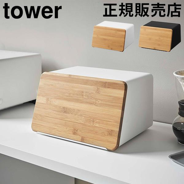 山崎実業 TOWER タワー 蓋が外せるブレッドケース ブレッドケース パンケース ブレッドビン ウッド フタ まな板 竹製 カッティングボード ブレッドボックス ストッカー 食パン 収納 ホワイト ブラック モノトーン 5290 5291