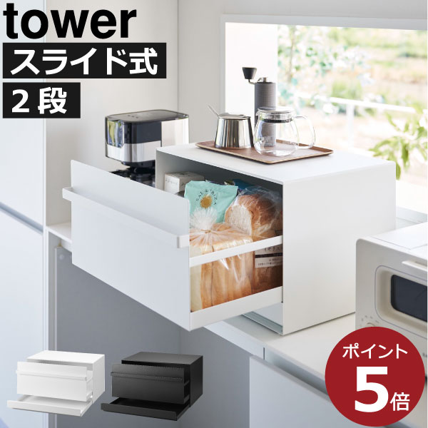 ブレッドケース おしゃれ パンケース 引き出し スライド towerシリーズ 新商品 大容量 トースター パン収納 食パン キッチン カウンター 台所 黒 スパイスラック 公式 キッチン雑貨 北欧 タワーシリーズ yamazaki 新作( 山崎実業 ブレッドケース tower 引き出し型2段 )