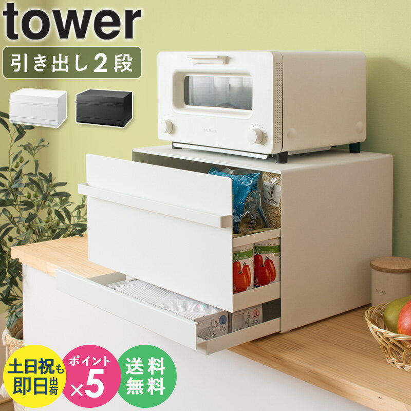 【2大特典つき】 [ ブレッドケース タワー 引き出し型 2段 tower 山崎実業 ] パンケース パン入れ ブレッドボックス キッチン収納 カウンター上収納 食パン お菓子 ストッカー おしゃれ ブラック ホワイト 1857 1858 公式 netc5