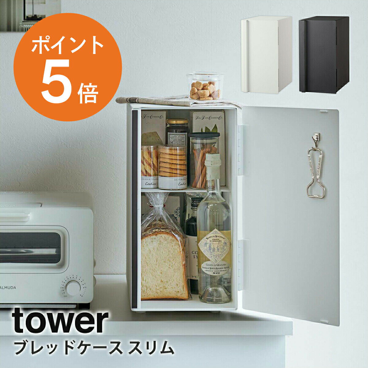 ブレッドケース TOWER タワー スリム ホワイト ブラック 山崎実業 おしゃれ パンケース 北欧 かわいい 食パン ジャム 紅茶 コーヒー 収納ケース キッチンケース【北海道・沖縄・離島配送不可】