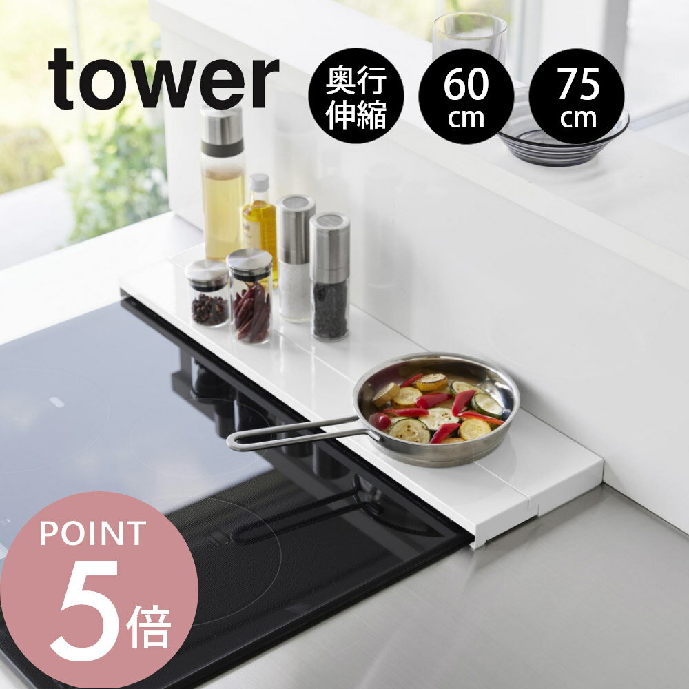 【全4種】排気口カバー IH おしゃれ フラットタイプ W60 W75 towerシリーズ 公式 新商品 油はねガード コンロ奥ラック コンロカバー 調味料 鍋 棚 キッチン雑貨 北欧 タワーシリーズ yamazaki 新作 60cm/75cm コンロ用( 山崎実業 奥行伸縮排気口カバー タワー tower )