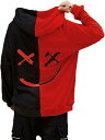 パーカー 長袖 メンズ フード付き 笑顔柄 ヒップホップ バイカラー レディース HIPHOP 切り替え スウェット コットン SーXXXL プルオーバー フーディ 春夏秋 ロングスリーブ オシャレ