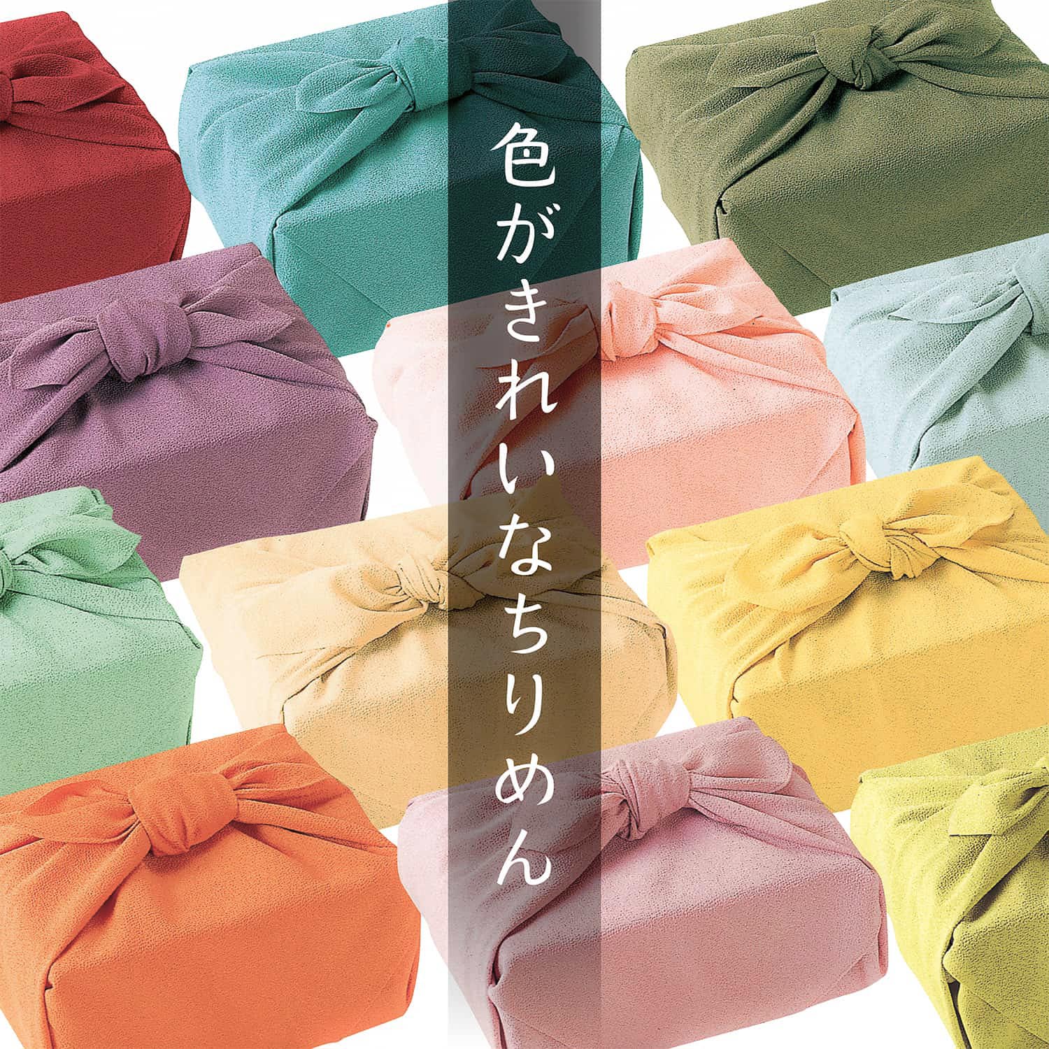 color-crepe色が綺麗なチリメン無地。二巾の大判風呂敷サイズ仕上げお返し物/お弁当クロス/袱紗金封包み/70cm×70cmサイズの一重仕立て。水に濡れても縮みません。ギフト用紙箱入りパッチワークや袋物手芸にも使えます100%ポリエステル/日本製