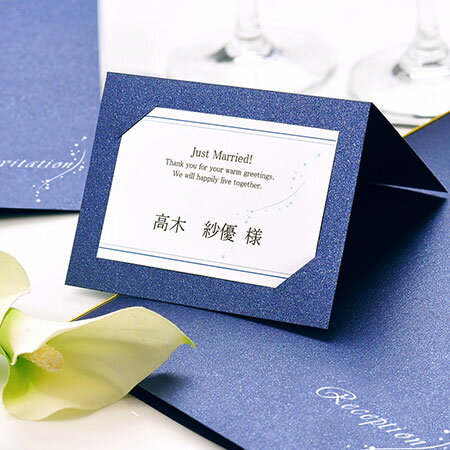 「ナイトブルー」席札手作りセット(10名様分)/結婚式 結婚式の席札 極上の素材とシックで洗練されたデザインはおしゃれを知りつくした大人のために…。 ◆深い輝きをたたえた夜空の青、シックな大人ウェディングに 美しく表情を変化させるヒミツは光の粒子のようにキラキラ輝くラメ。厚みのあるしっかりした素材で高級感もたっぷりです。 ◆まるでシルクのなようななめらかな手触り 光沢のある深いブルーの表紙はシルクのようになめらかな手触り。細部にまでこだわりがつまった、ほめられる席札です。 ◆おすすめ!手書きのメッセージでおもてなし度もカンペキ 席札の内側に手書きでメッセージを書いてみては?ゲストへの心づかいが喜ばれます♡ キラキラの素材も書きやすい&見やすいラメのゲルインクボールペンはこちらから。 ◆無料テンプレートをダウンロードして編集&印刷すればOK!手作り席札が簡単に完成! 10名分を一度に印刷できるテンプレート。デザインもおしゃれです ミシン目にそって手で簡単に切り離せて、台紙の切り込みにはさむだけの簡単さ! お届けの内容 ※1セットで10名様分作れます ※商品画像イメージはテンプレートを印刷したものでお届けするのは無地のペーパーです ご購入特典 商品お届け時に、ファルベのテンプレートサイトのダウンロードパスワードをお知らせいたします。ご購入特典として サイト内の全てのテンプレートをご利用いただけます。 ※ テンプレートはMicrosoft Wordで編集可能です。 関連商品 プリント用紙の追加はコチラ【席札名前印刷用A4シート追加】 同じデザインの席次表はコチラ