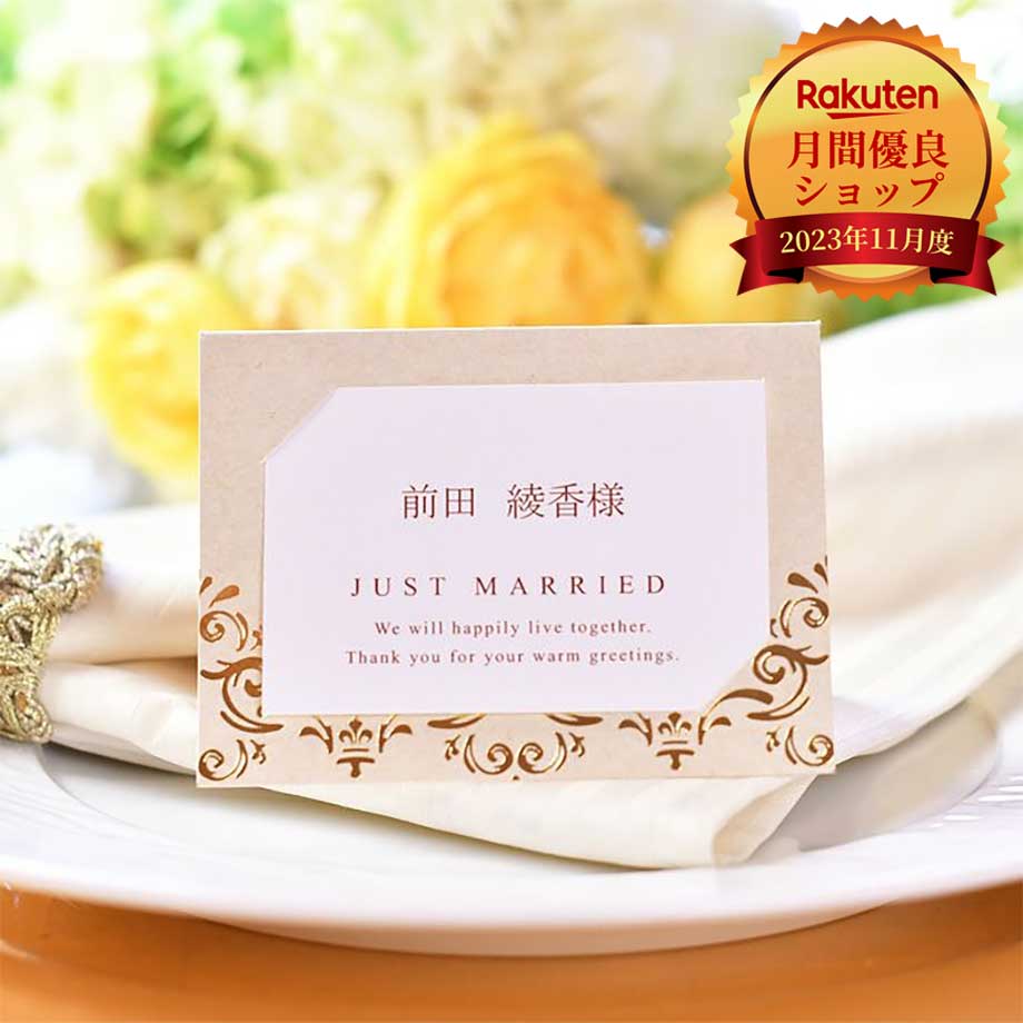 2022年11月1日より小部数1〜9部(10セット未満)のご注文、 お急ぎ納品(2週間以内の納品)にはオプション料金が別途発生いたします。 該当するご注文に関しましては、各オプションも併せてご注文くださいませ。 ご理解ご協力の程、何卒よろしくお願いいたします。 梅は「豊かな生活」を表します お二人のこれからの豊かな生活に 愛が溢れますようにと願いを込めて… 【商品詳細】 結婚式 席札 W91mm×H64mm(立てた状態) 特殊漢字も対応可能です。 パソコン、スマートフォンで変換されない漢字は手書きしたものを写真でお送りください。 席札と同じデザインで、席次表・メニュー・ゲストブックもございます! ※小部数1〜9部(10セット未満)でのご注文の場合、校正料金が発生いたします。 商品と併せてご注文くださいませ。 校正料金 ※お急ぎ納品(2週間以内の納品)をご希望の場合、特急料金が発生いたします。 商品と併せてご注文くださいませ。 特急料金 【ご注文の流れ】 まずはカートより必要枚数分ご注文ください。 ご注文後、席札作成フォームをメールにてお送りいたします。 必要箇所をご入力いただき、ご返信いただけますと幸いです。 基本的にはデータでお名前をお送りいただきましたら確認事項が無い限り、 そのまま印刷の手配をさせていただきます。 手書きの原稿をお送りいただいた際には、メールにて、 席札原稿をお送りいたしますので文字に間違いがないかをご確認ください。 パソコンをお持ちでない方もご安心ください! 【ご要望がございましたらご相談ください!】 ご不明点などございましたら、お気軽にお問い合わせください。 ベテランスタッフが対応いたします。
