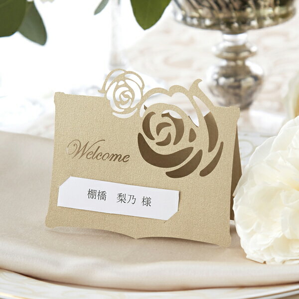 席札 LumieRose-リュミエローズ-席札 1セット8名様分(結婚式 ペーパーアイテム 手作りキット テンプレート ウェディング ブライダル パーティー 二次会 高級感 レーザー バラ 上品 ゴールド 名前札 ネームカード)