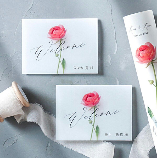 席札 Charme de fleur -シャルムドフルール-(ラナンキュラス) 席札 1シート4名様用(結婚式 ペーパーアイテム 手作りキット テンプレート ウェディング ブライダル パーティー 二次会 イタリア リボン 花柄 名前札 ネームカード)