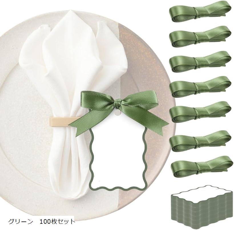 メッセージカード リボン付き 席札 ネームカード プレゼントタグ 結婚式 パーティー 業務用 グリーン 100枚セット