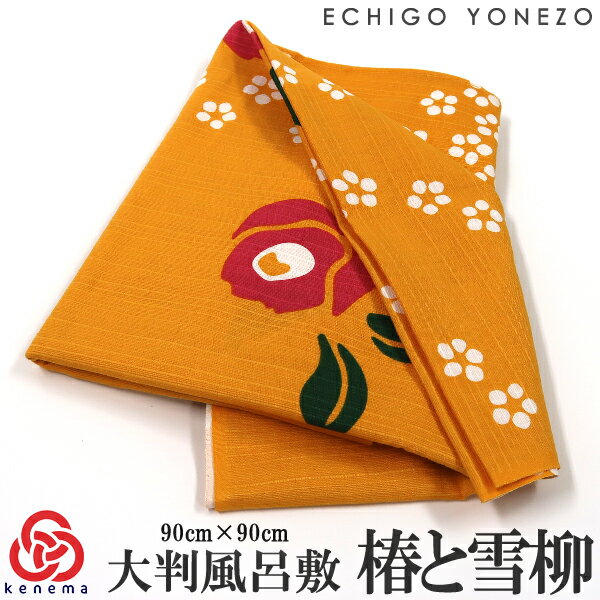 【気音間】日本伝統 大判風呂敷 椿と雪柳(つばきとゆきやなぎ)90cm×90cm 家運隆盛 富貴吉祥 日本製 綿100% japanese traditional cotton gift cloth