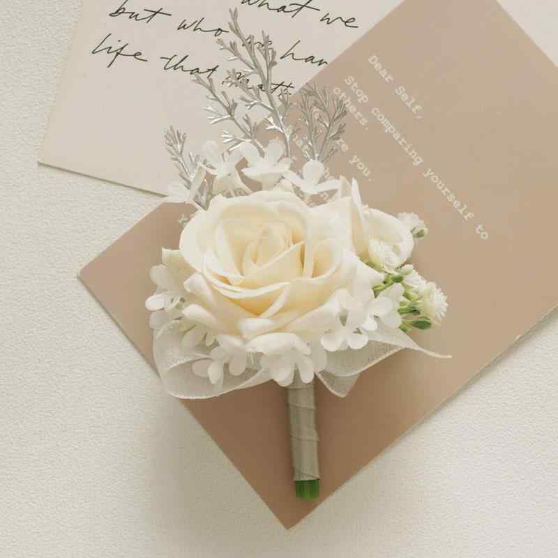 コサージュ ブートニア リストコサージュ 結婚式 披露宴 ウェディング 卒業式 入学式 発表会 パーティー フォーマル ビジネスセレモニー 式典 開業祝 ゲスト 参列者 布製 造花 フェイクフラワー シャンパンカラー(x2)