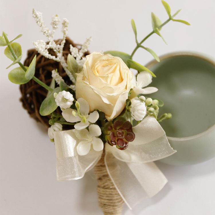 ウェディング小物 コサージュ リストブーケ ブートニア レトロ ドライフラワー風 造花 結婚式 セレモニー ビジネス 撮影小物 フォトアイテム 布製 アンティーク クラシック(x2)