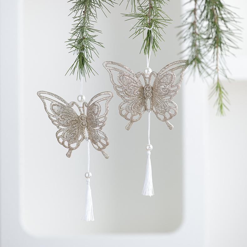 クリスマスオーナメント キラキラ 透かし彫り 雪の結晶 ハート 蝶々 PVC製 おしゃれ かわいい 吊り下げ飾り 華やか デコレーション クリスマスツリー装飾品