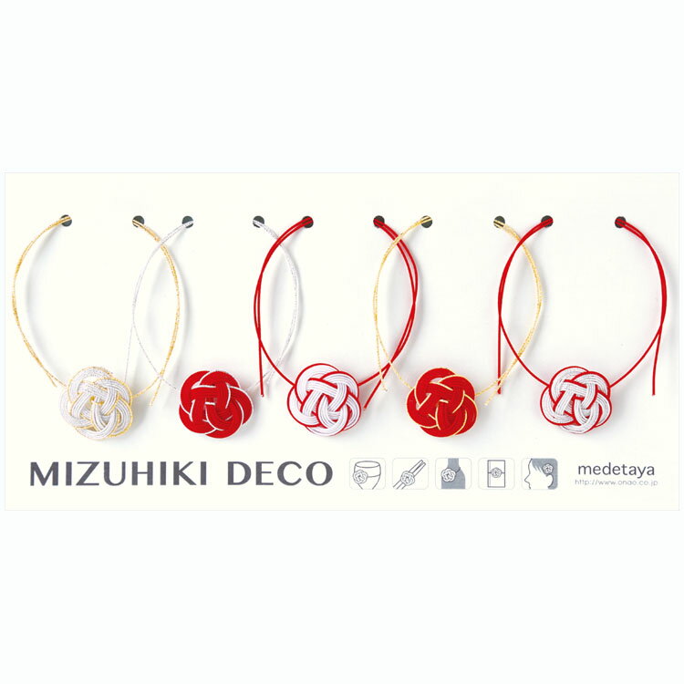 商 品 に つ い て 水引をお祝いの品にかけたりと、さかんになったのは、室町時代から江戸時代にかけて、日本独特の文化が興隆した頃といわれています。 お祝いの際の定番カラー「赤・白・金色」の水引を組み合わせた梅結びがアクセントになっています。 お酒などのボトルのラッピングとしても、お正月やおめでたい席のお祝い事の席でもお使いいただける人気のセットです。 製 品 仕 様 ■素材:和紙 ■花のサイズ:直径3cm ■帯の長さ:40cm ■5個入 ■原産国:日本 <水引の取り扱い> ※水引は紙製品ですので、湿気にご注意ください。 ※結ぶ前は、使用する水引を指先で軽くしごきます。 ※結び直しをすると、きれいに仕上がりません。 ※一つひとつ手作りのため、色合い・風合い・仕様などが写真と若干異なる場合がございます。 ※写真の色は、本来の色に極力近づけておりますが、諸々の条件により、実物とは色が異なる場合がございます。 あらかじめご了承ください。 関 連 商 品 水引DECO 富士山・だるま お供えもち 小 ラ ッ ピ ン グ ラッピングをご希望の場合は、ラッピングをお買い物かごへ入れてください。 白無地和紙無料ラッピング【0円】 季節の柄の和紙+水引付き有料ラッピング【110円】 《その他のラッピング一覧はこちら》