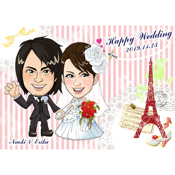 CG似顔絵ウェルカムボード2nd Paris de Franceプレゼント 結婚式 ギフト お祝い 披露宴 ウェディング ウエルカムスペース レース ファンシー