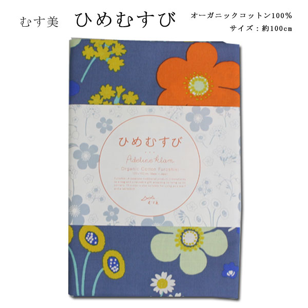 [▲定番▲] 【モダン柄】むす美「ひめむすび Adeline Klam」大判風呂敷(日本製)100cm×100cm/綿100%/フラワーガーデン・グレーネイビー≪お取寄せOK≫【メール便OK】key-08