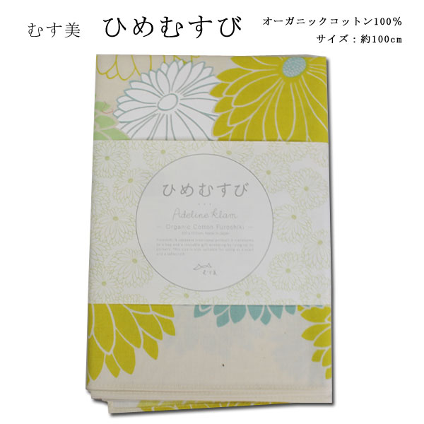 [▲定番▲] 【モダン柄】むす美「ひめむすび Adeline Klam」大判風呂敷(日本製)100cm×100cm/綿100%/菊・イエロー≪お取寄せOK≫【メール便OK】key-08