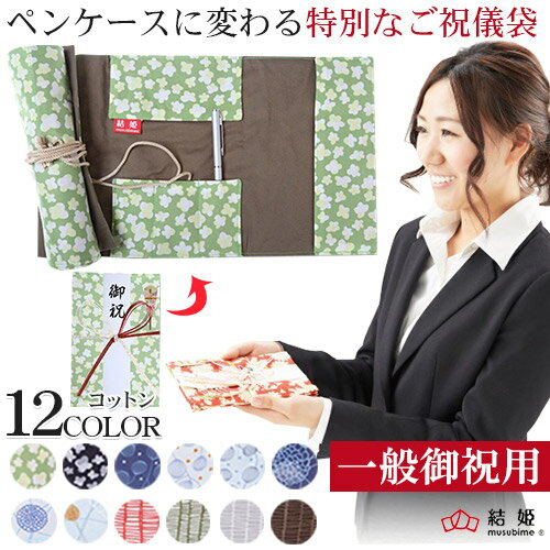 ペンケースに変わるご祝儀袋 一般御祝用 ご祝儀袋 末広 コットン 日本製 手作り 伝統生地 越前和紙使用 祝儀袋 御祝 出産祝い 新築祝い 開業祝い お祭り 就職祝い お見舞い お祝儀袋【結姫】【メール便送料無料】
