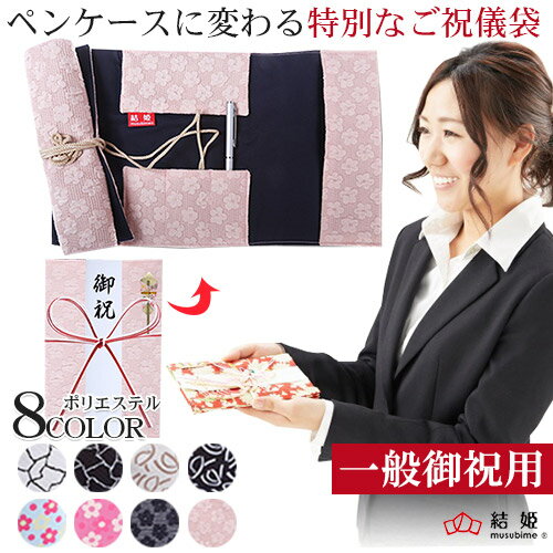 ペンケースに変わるご祝儀袋 一般御祝用 ご祝儀袋 高砂 ポリエステル 日本製 手作り 伝統生地 越前和紙使用 祝儀袋 御祝 出産祝い 新築祝い 開業祝い 就職祝い お祝儀袋【結姫 むすびめ】【メール便送料無料】