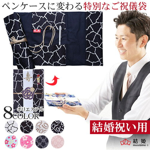 ペンケースに変わるご祝儀袋 結婚祝い用 ご祝儀袋 高砂 ポリエステル 日本製 手作り 伝統生地 越前和紙使用 祝儀袋 御祝 結婚祝い ご結婚 婚約祝い お祝儀袋 主賓・乾杯【結姫 むすびめ】【メール便送料無料】