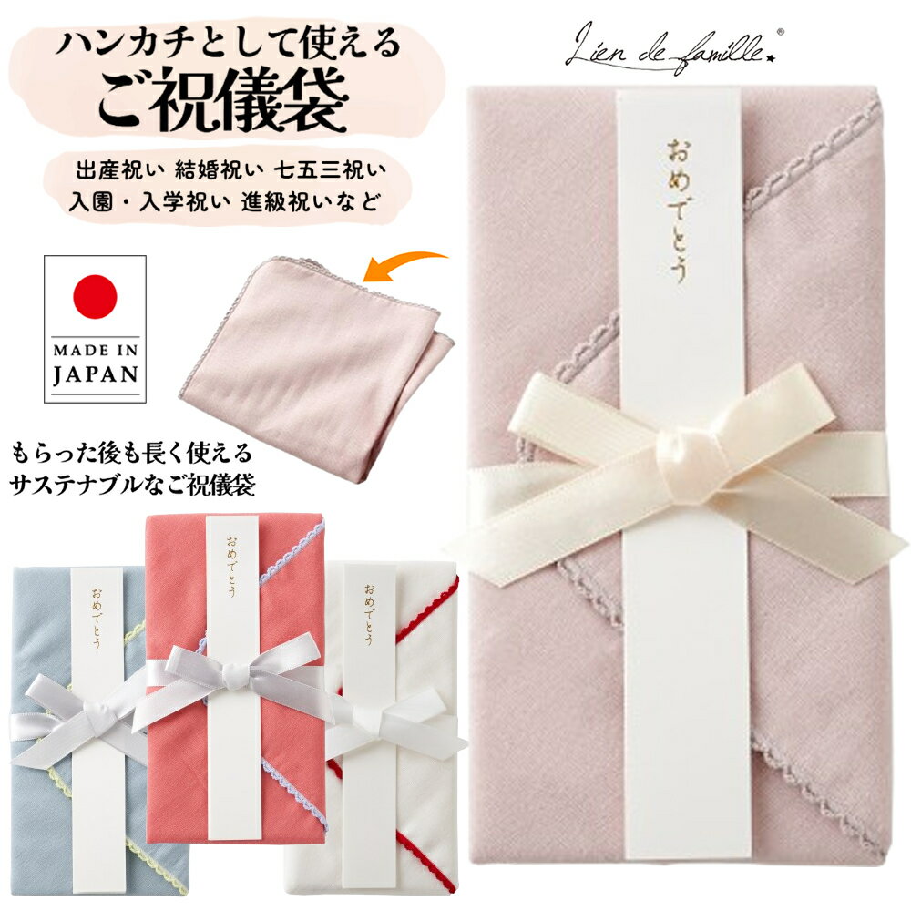 ご祝儀袋 祝儀袋 ハンカチとして使えるご祝儀袋 日本製 Lien de famile リヤンドファミーユ おしゃれ かわいい 上品 ガーゼ ハンカチ お誕生日 出産祝い 結婚祝い お食い初め 入園祝い 入学祝い お誕生日 成人祝い 新築祝い ピンク ホワイト コーラル ブルー