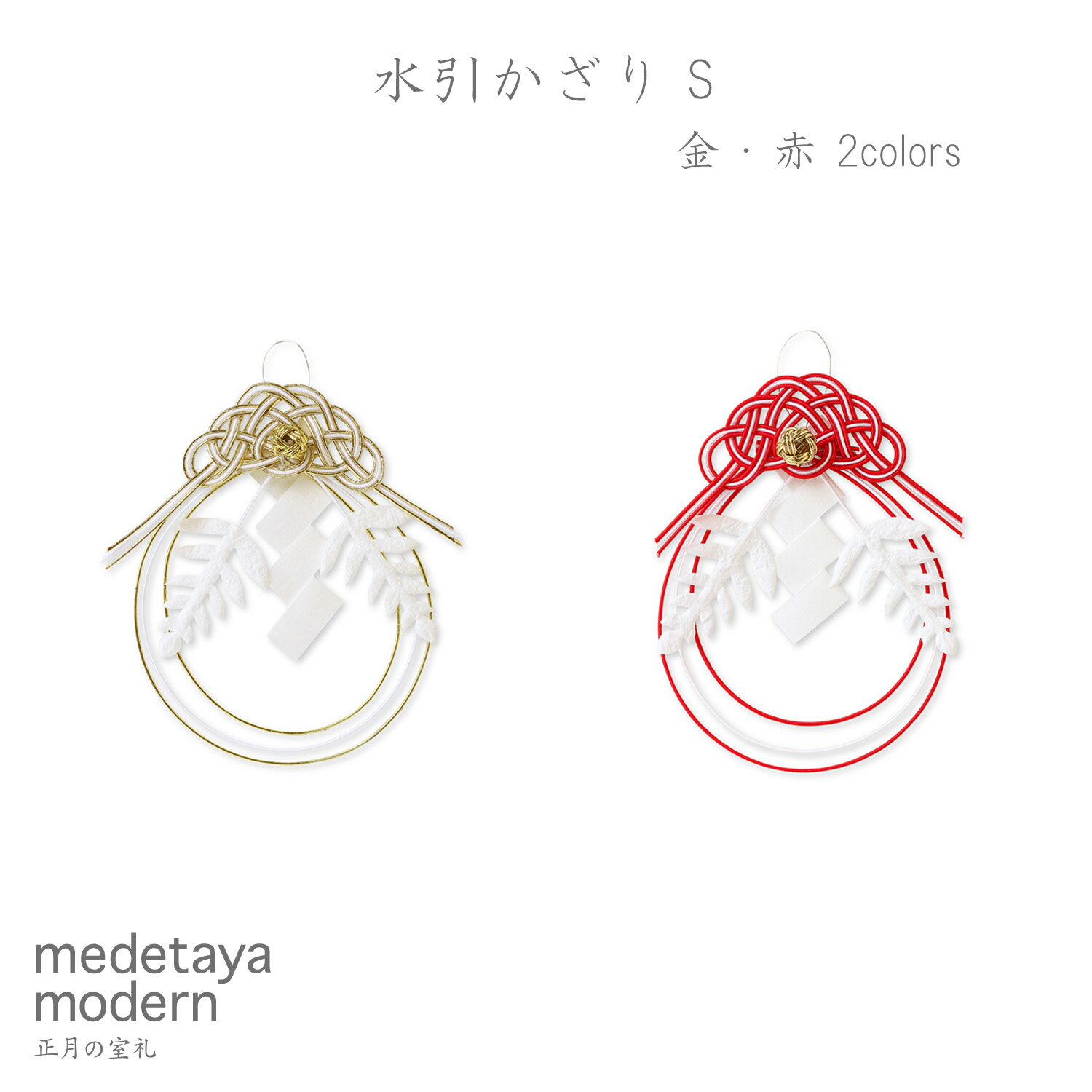 和紙 お正月飾り 国産 日本製 装飾 オーナメント | medetaya modern 水引かざり S【金・赤】2color