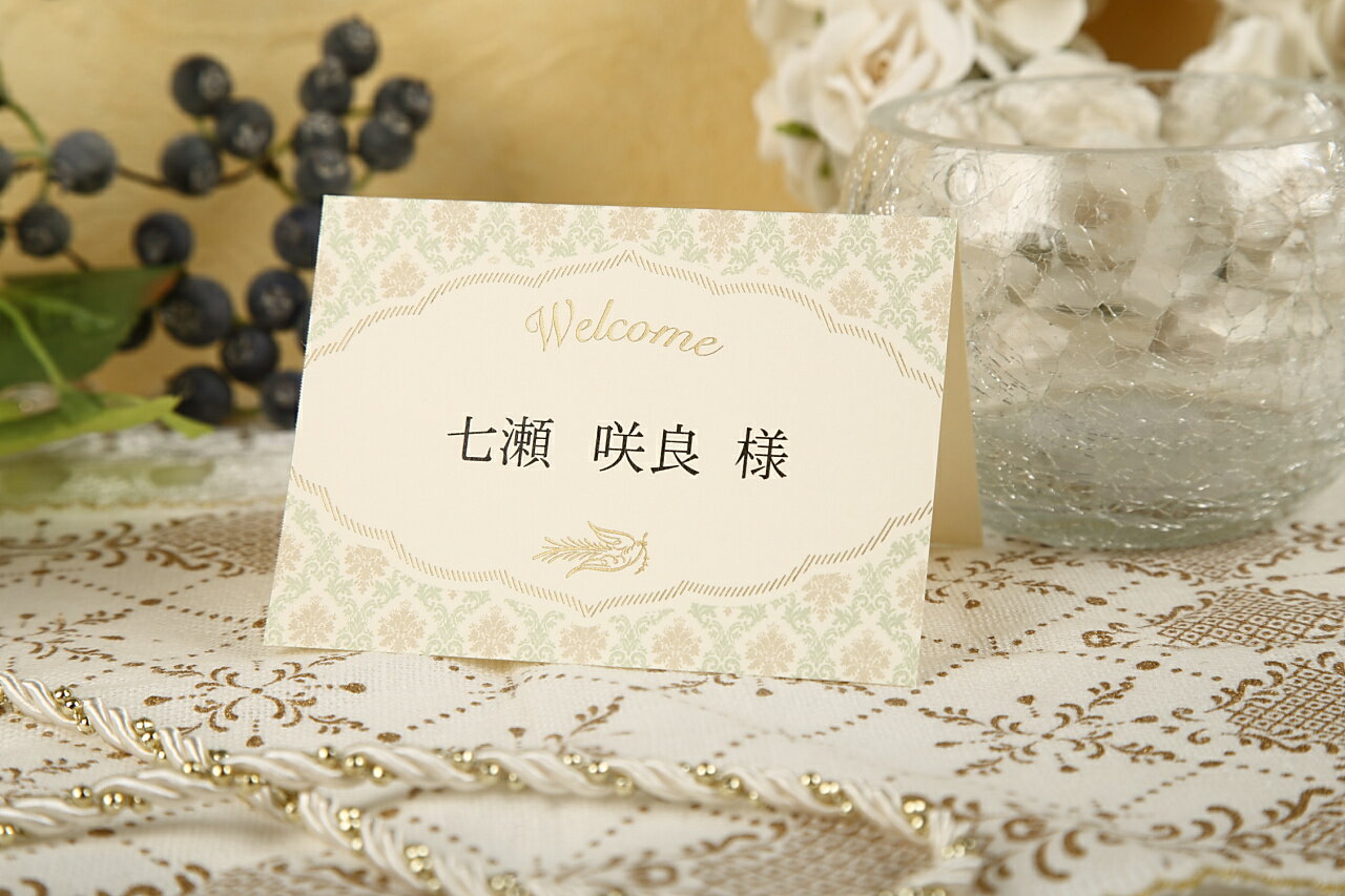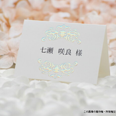 こちらの商品は20セット以上からのご購入をお願いいたします。 20セット未満のご注文の方は、自動的にキャンセルとなりますのでご了承願います。結婚式 席札 ロマネスク(パール) 教会の柱や壁の彫刻の模様として用いられるアカンサスという植物がモチーフの席札。 その花言葉は「離れない結び目」。 永久の愛を誓う日にぴったりの席札です。 商品名 席札 ロマネスク(パール) 商品サイズ 100mm×148mm(二つ折を開いた状態のサイズ) 無料テンプレート ご自分でも簡単に作成できるワードのテンプレートを ご用意しております。 ご注文後Microsoft Wordのテンプレートをメールでお送りいたします。 納期 基本的に翌営業日に発送。在庫がない場合、7営業日以内に発送いたします。 ご自身での印刷 インクジェットプリンター・・・・相性度★ レーザープリンター・・・・・・・相性度★★★ ※レーザープリンターの方がよりキレイに印刷ができます。 ※お持ちのプリンターのサイズを事前にご確認ください。 インクジェットでも印刷は可能ですが、インクジェット専用紙ではございません。 →サンプルのご注文はコチラ ご購入後の、プリンターとの相性によるクレームにはお答えしかねますのでご了承ください。 席札印刷(別途料金) 当店では印刷のご注文も承ることが可能です。 難しいこと一切なしのおススメプランです。 印刷が必要な場合、商品と一緒に印刷プランを必要人数分ご注文下さい。 →印刷のご注文はコチラ 注意事項 1.印刷用紙について 当社のペーパーアイテムは、インクジェットプリンターで印刷することは可能ですが、 インクジェット専用紙ではありません。滲む可能性がございます。お客様ご自身で印刷される場合、サンプルセットをご用意していますので、本番ご購入前にテストをされることをお勧めいたします。 →サンプルのご注文はコチラ ご購入後の、プリンターとの相性によるクレームにはお答えしかねますのでご了承下さい。 2.無料テンプレートについて 無料テンプレートはWindowsマイクロソフトワードとなっております。他ソフトとの互換性等のクレームにはお答えしかねますのでご了承ください。 以下の方はご利用になれませんのでご了承ください ・パソコンのメールアドレスをお持ちでない方。 ・インターネットの環境がご利用できない方 ・パソコンにMicrosoft Wordが入っていない方。 ↑↑サンプルのご注文はコチラをクリック