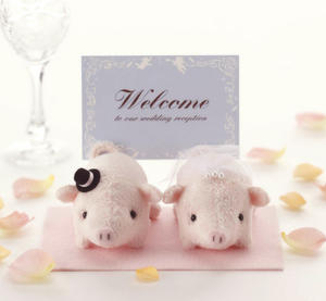 幸せを運ぶと言われる縁起の良い人気のぶたがミニミニサイズで登場です! ウェルカムマスコットとして、席札としてかわいいぶーちゃんがお客様をお出迎えします。 ミニミニぶーちゃんはもうせんとカードが付いています。 カードはしっぽにはさめるので席札には最適♪受付のウェルカムドールとしてもご使用いただけます。 【サイズ】 約幅6cm×高さ4.5cm×奥行9.5cm(1体当り) 【注意】 こちらの商品は完成品です。 ※もうせん、メッセージカードが商品に含まれます。 【関連商品】 ●ピンク幸せを運ぶ縁起の良い人気のぶたがミニミニサイズでお出迎え♪