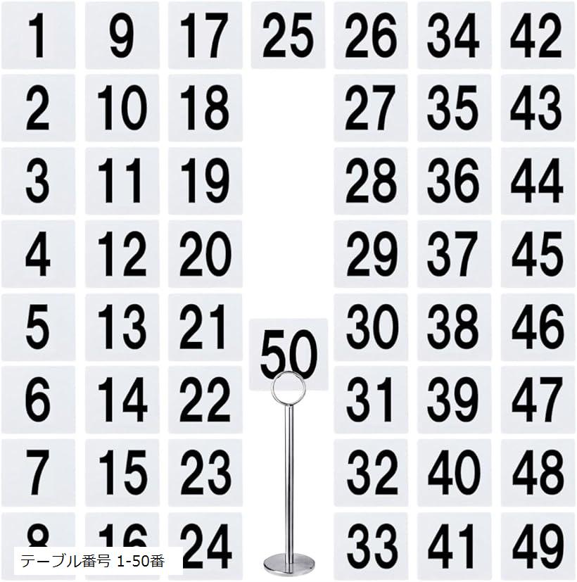 互換品 番号札 席札 プラスチック テーブルナンバー スタンド プレート 席札立て 数字 (テーブル番号 1-50番)