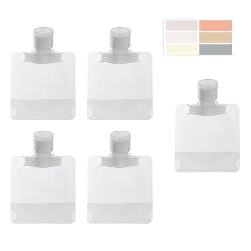 トラベル液体個包装 5個セット 30ml パウチ容器 袋入り 小分け 詰め替え 漏れ防止 トラベルボトル 透明 密封性 詰め替え容器 クリーム シャンプーボトル 化粧水 乳液 収納 旅行用 出張用 6枚ラベルシール付き (30ml)
