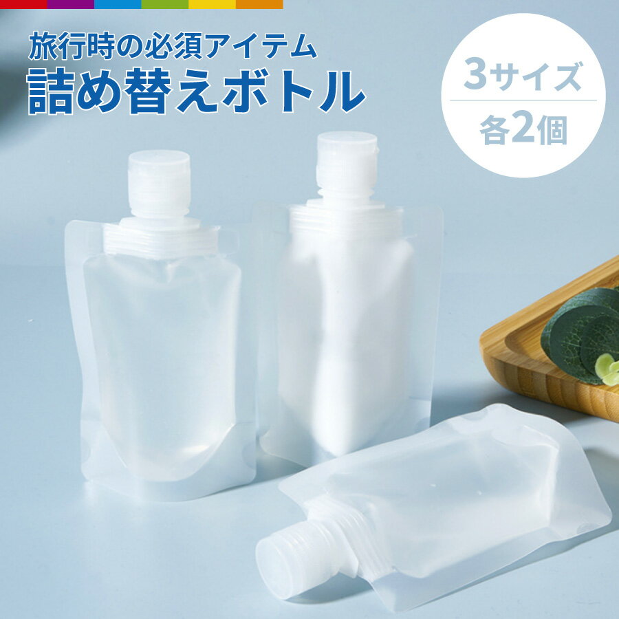トラベルボトル 詰め替えパウチ 3種類 各2個セット 旅行 詰め替え容器 詰め替えボトル シャンプー 化粧水 携帯 出張 クリア 透明 100ml 50ml 30ml