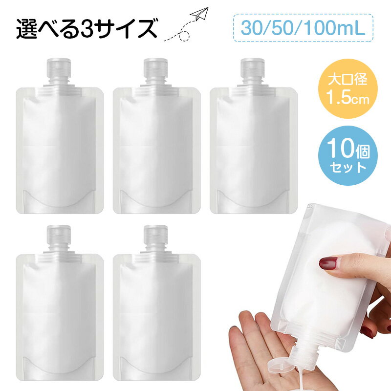 【10個セット】 容量30ml 50ml 100ml トラベルボトル 詰め替えボトル トラベル液体個包装 パウチ容器 袋入り 小分けボトル 漏れ防止 使い回し 詰め替え容器 クリーム 化粧水 乳液 収納 シャンプーボトル 透明 密封性旅行用 出張用 送料無料