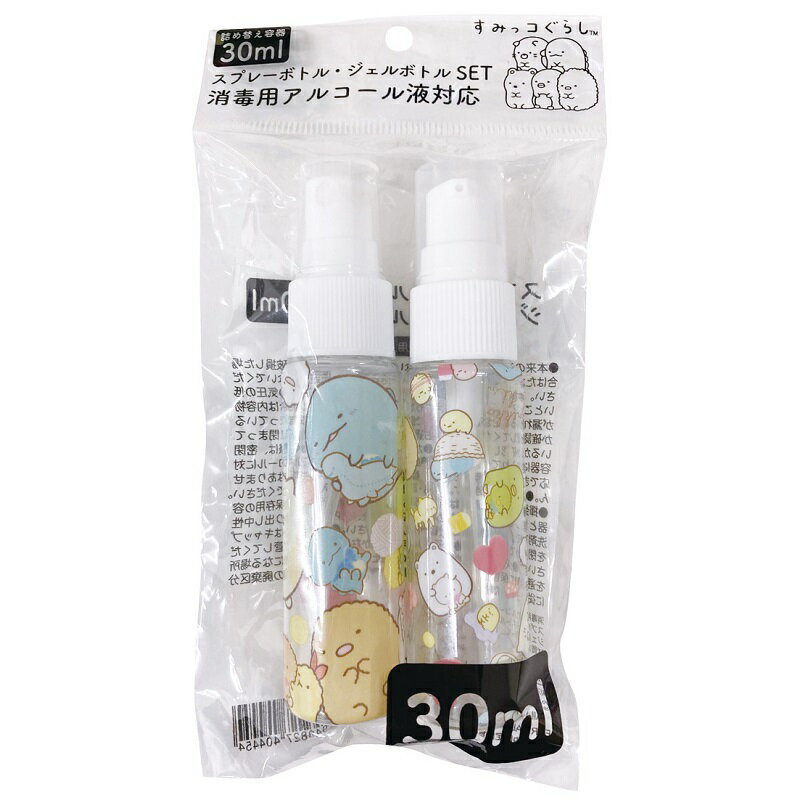 すみっコぐらし 携帯用 スプレーボトル・ジェルボトル 2本入り×3個 30ml容器 3柄セット アルコール消毒対応 (K-1910-3s) 生活雑貨 ボトルケース かわいい キャラクター グッズ