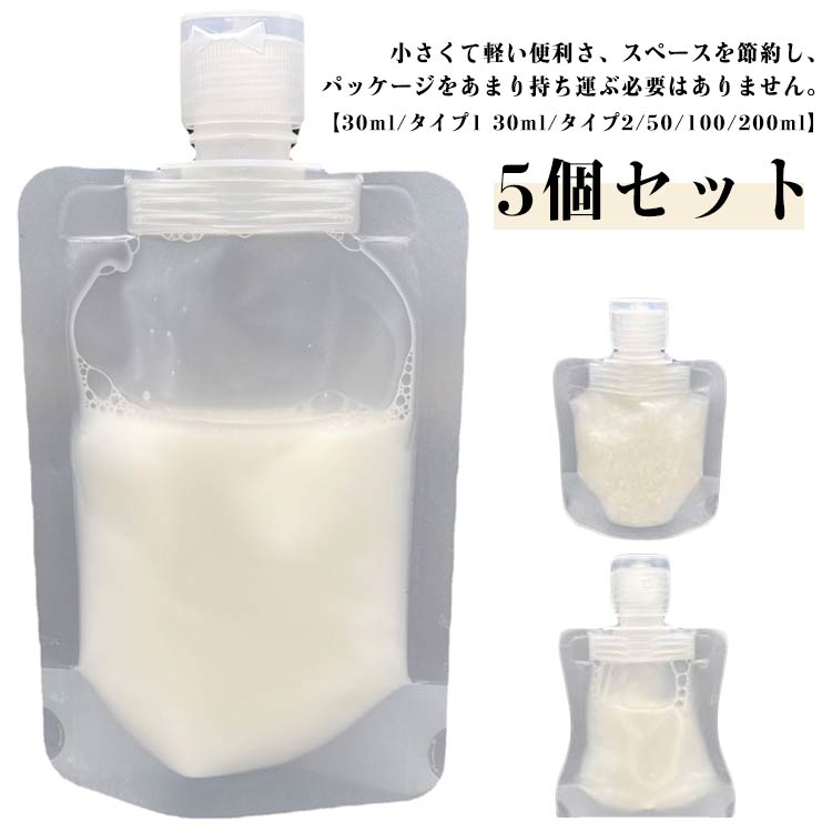 旅行ポーチ袋入り透明漏れ防止省スペース包装袋シャンプーローションボディソープ詰め替え容器使い捨て出張用旅行用化粧品旅行便利グッズ5個セット30mlタイプ130mlタイプ250ml100ml200ml送料無料