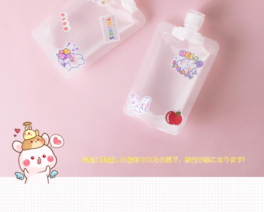 トラベルボトル 100枚セット 8*14cm 11*15cm 10*15cm 12*18cm半透明で液体の残量を一目で確認できる。大きな注ぎ口で直接液体を注入でき、詰め替え・洗浄がしやすくなっています。コンパクトで軽いため、スペースの節約と持ち運びに最適。密閉力もしっかりしており、中身も簡単には漏れない仕様。旅行用シャンプー、ボディーソープ、乳液、化粧水、その他の化粧品などを持ち歩くのに便利です。 サイズ F(100枚) サイズについての説明 サイズ:8*14cm 11*15cm 10*15cm 12*18cm ※本品の小分け袋は、底面をシーラーで封をする必要があります(ストレートアイロンでも代用可能です)。 素材 PE 色 8*14cm(透明) 11*15cm(透明) 10*15cm(マット) 10*15cm(透明) 12*18cm(マット) 12*18cm(透明) 備考 ●サイズ詳細等の測り方はスタッフ間で統一、徹底はしておりますが、実寸は商品によって若干の誤差(1cm〜3cm )がある場合がございますので、予めご了承ください。 ●製造ロットにより、細部形状の違いや、同色でも色味に多少の誤差が生じます。 ●パッケージは改良のため予告なく仕様を変更する場合があります。 ▼商品の色は、撮影時の光や、お客様のモニターの色具合などにより、実際の商品と異なる場合がございます。あらかじめ、ご了承ください。 ▼生地の特性上、やや匂いが強く感じられるものもございます。数日のご使用や陰干しなどで気になる匂いはほとんど感じられなくなります。 ▼同じ商品でも生産時期により形やサイズ、カラーに多少の誤差が生じる場合もございます。 ▼他店舗でも在庫を共有して販売をしている為、受注後欠品となる場合もございます。予め、ご了承お願い申し上げます。 ▼出荷前に全て検品を行っておりますが、万が一商品に不具合があった場合は、お問い合わせフォームまたはメールよりご連絡頂けます様お願い申し上げます。速やかに対応致しますのでご安心ください。