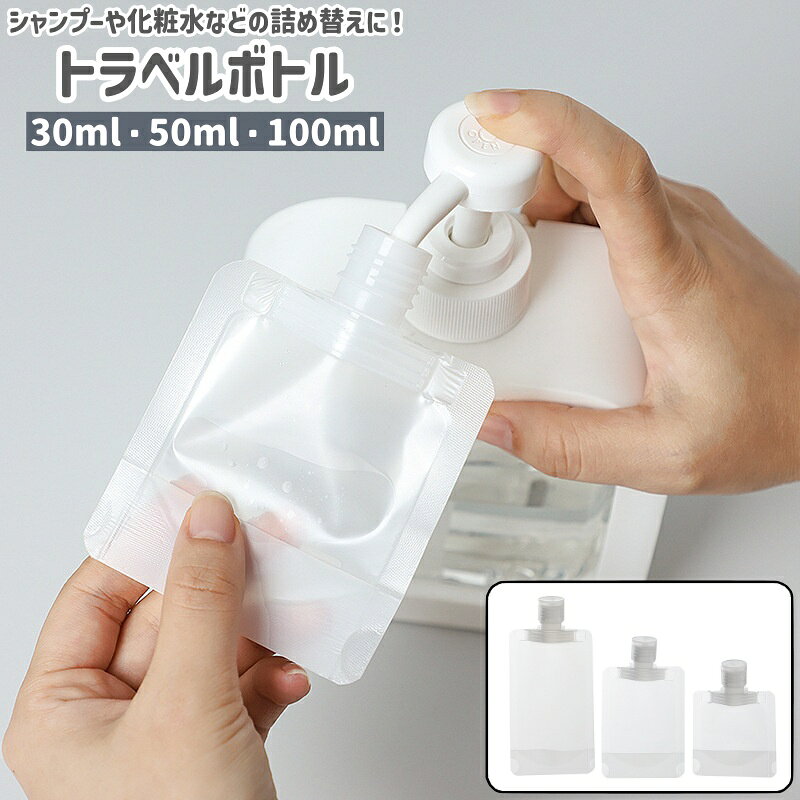 送料無料 トラベルボトル 詰め替えボトル 30ml 50ml 100ml シンプル シャンプー リンス 化粧水 乳液 小分け 詰め替え 収納 持ち運び 旅行 トラベル お出かけ 容器 透明 クリア