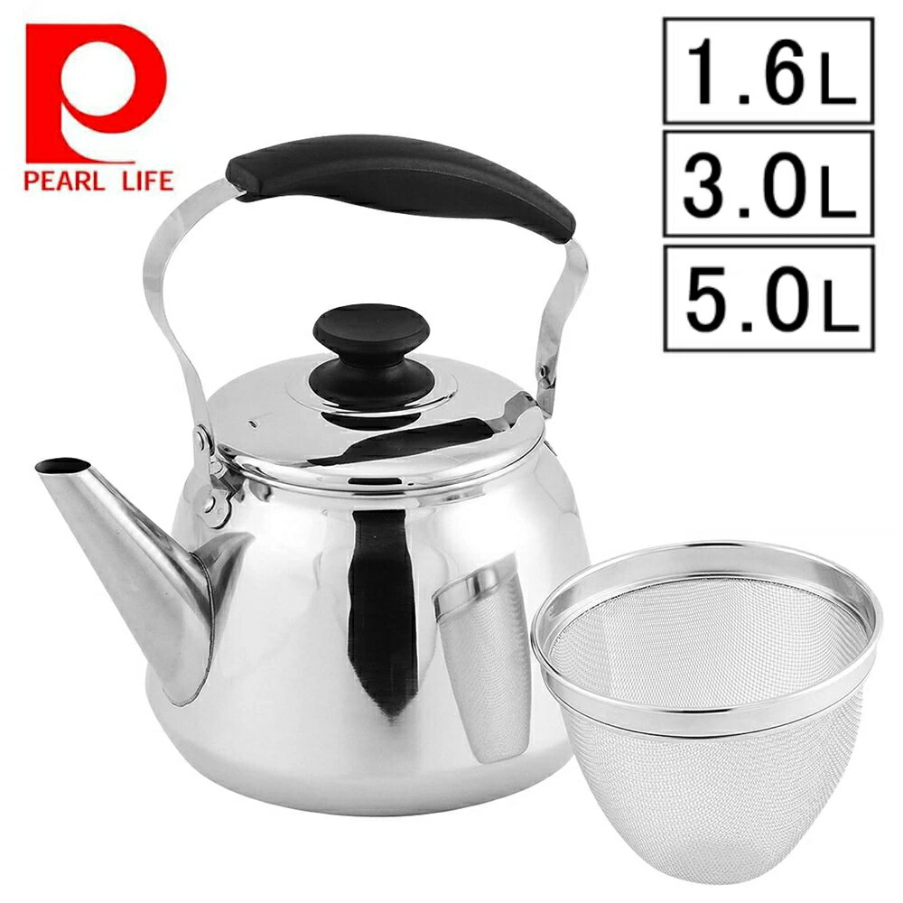 よく一緒に購入されている商品 作業マット 作業用 マット シリコンマット 1,000円パール金属 ステンレス製 ケトル たっぷり沸かせる!! お水を沸かして美味しいお茶を♪ 麦茶を作るときに便利です。 煮だしに最適な深型茶こしアミ付き。 ケットルで十分に沸騰させて、カルキ臭を取り除いた 美味しいお茶をお楽しみください。 オール熱源対応なのでIHでもお使いいただけます。 (1.6L) 1.0Lの冷水筒、パーソナルジャグ約1本分を1度に沸かせます。 (3.0L) 2.0Lの冷水筒、パーソナルジャグ約1本分を1度に沸かせます。 (5.0L) 2.0Lの冷水筒、パーソナルジャグ約2本分を1度に沸かせます。 【商品詳細】 1.6L) サイズ:(約)幅205×奥行160×高さ225mm 満水容量:1.6L 適正容量:(約)1.1L、※オール熱源対応 (3.0L) サイズ:(約)幅245×奥行190×高さ265mm 満水容量:3.0L 適正容量:(約)2.1L、※オール熱源対応 (5.0L) サイズ:(約)幅285×奥行230×高さ290mm 満水容量:5.0L 適正容量:(約)3.7L、※オール熱源対応 材質 本体:ステンレス鋼(クロム18%・ニッケル8%) 注ぎ口:ステンレス鋼(クロム18%・ニッケル8%) 蓋:ステンレス鋼(クロム14%) 茶こし:ステンレス鋼 取っ手・つまみ・座板:フェノール樹脂(耐熱温度150度) 底の厚さ:約0.5mm JANコード 1.6L_HB-5645:4549308556452 3.0L_HB-5646:4549308556469 5.0L_HB-5647:4549308556476 新着商品はこちら2025/11/29 タイヤチェーン 布製 布 非金属 スノーチェ8,800円~2025/11/29 タイヤチェーン 布製 布 非金属 スノーチェ8,980円~2025/11/26 魔法瓶 ポット 2.5l 保温 保冷 保温ポ3,970円再販商品はこちら2025/11/29 BUFFALO WXR-5700AX7S 10,480円~2025/11/29 寸胴鍋 21cm 6.4L ステンレス ih3,030円2025/11/29 電気毛布 掛け敷き ひざ掛け 掛け 敷き 電4,730円~2025/11/29 更新類似商品はこちら ステンレス製ケトル 5.0L やかん ケトル2,138円~ アルミケトル 3.0L やかん ケトル アル2,500円 ステンレス ケトル 1.6L 2.7L ステ2,980円~ やかん ステンレス ih ケトル 広口 ステ2,480円~
