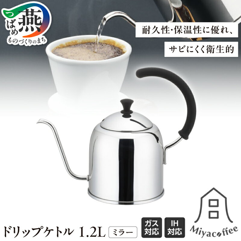 【ふるさと納税】Miyacoffee ドリップケトル 1.2L ミラー【 IH ガス 対応 ステンレス コーヒーポット ドリップポット おしゃれ コーヒー グッズ コーヒーケトル キッチン用品 新潟県 燕三条 燕市 】