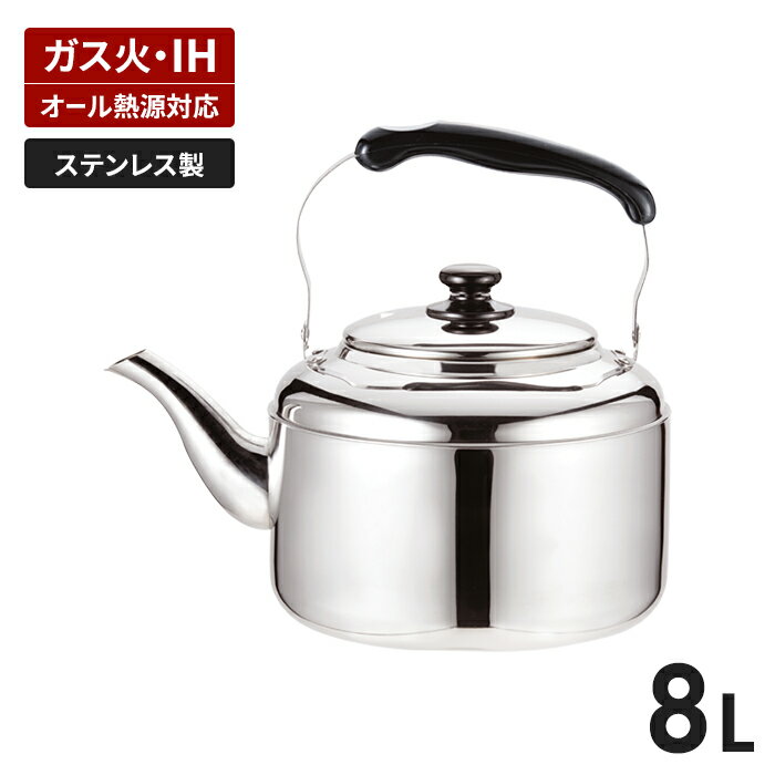 【楽天スーパーSALE10%OFF】IH対応 やかん ih対応 ステンレス製 ケトル 8L 大容量 ガス火 IH オール熱源対応 広口タイプ 衛生的 錆びにくい お茶作り 大きめ 便利 調理器具 新生活 一人暮らし