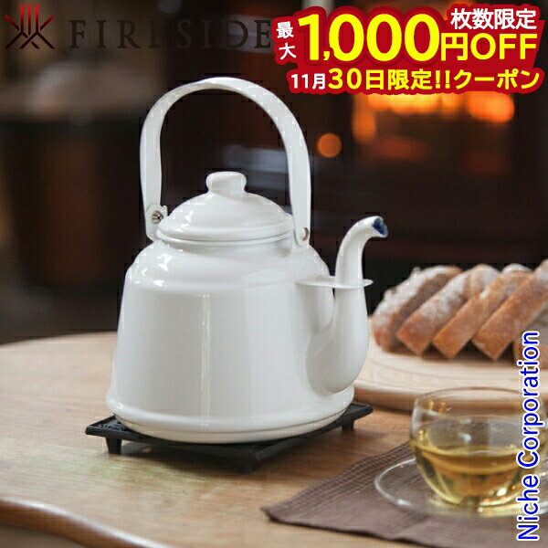【30日は!枚数限定 最大1,000円OFFクーポン】レトロホーローケトル ホワイト 41301 ファイヤーサイド ケトル ホーロー やかん 琺瑯 ポット 薪ストーブ 暖炉 アウトドア キャンプ ガス IH対応 日本製