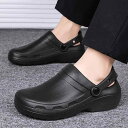 コックシューズ メンズ ブラック 厨房 作業用 業務用 飲食店 防水 耐油 滑り止め 厚底 通気性 つま先保護 スリッポン EVA素材 立ち仕事