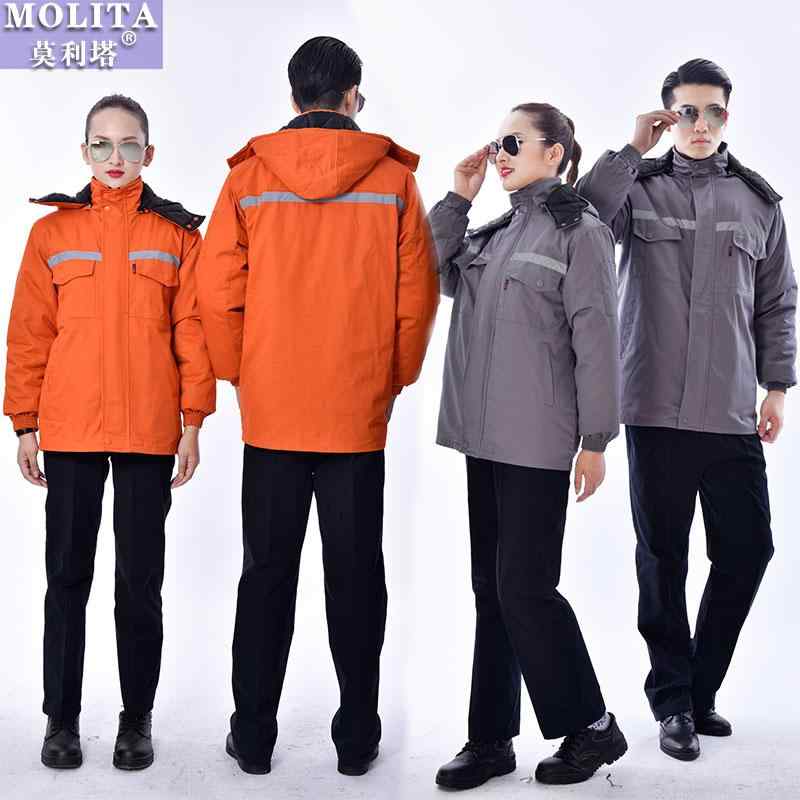 ジャケット ケータリングスタッフ 防寒対策 暖かい バイク ユニフォーム 冷蔵倉庫 冬用 反射 ストリップ 作業着 コットンウェア 男性用 レディース 厚手 取り外し可能 綿入り