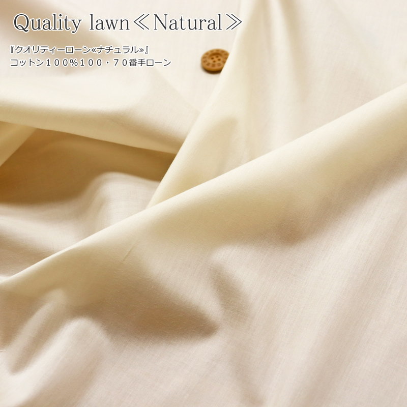 『クオリティーローン≪ナチュラル≫』コットン100%100・70番手ローン●素材:コットン100% ●生地幅:約106cm無地/プレーン/キッズ/ベビー/大人/綿ウェアー/小物/インテリア/手づくり/