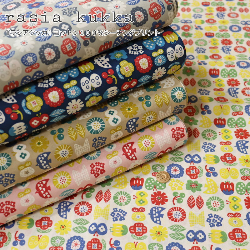 『rasia kukka≪ラシアクッカ≫』コットン100%シーチングプリント素材:コットン100% 生地幅:約108cm北欧/花柄/女の子/キッズ/ベビー/大人/綿/ウェアー/小物/インテリア/ハンドメイド/手作り/