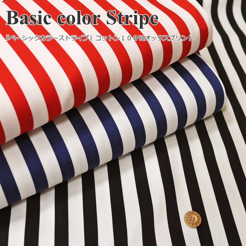 『Basic color Stripe≪ベーシックカラーストライプ≫』コットン100%オックスプリント素材:コットン100% 生地幅:約108cmストライプ/入園/入学/綿/ウェアー/小物/インテリア/手作り/ハンドメイド/