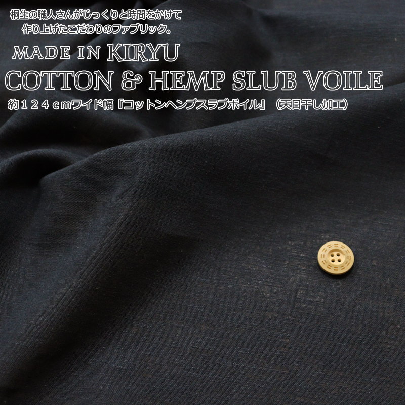 メイドイン桐生のこだわりのファブリック♪約124cmワイド幅『コットンヘンプスラブボイル≪ダークネイビー≫』(天日干し加工)素材:コットン67%・ヘンプ(植物繊維)33%無地/春夏/生地/綿麻/ウェアー/ハンドメイド/手づくり/