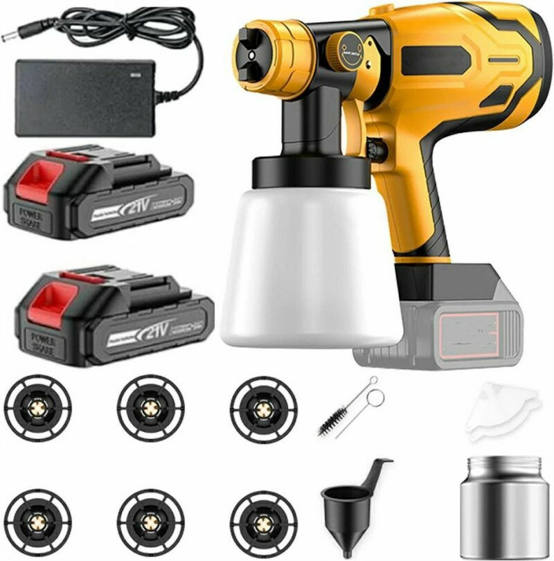 電動スプレーガン、コードレススプレーガン 塗料 塗装機 スプレー機 小型 スプレー機18Vバッテリー対応 電動ガン 家庭用 4レベルの幅調整可能 電動ペイントスプレーツール 塗料カップ 1000ml 噴霧 電動ペインター DIY 広範囲/凹凸面/隙間の塗装を向け 21Vバッテリー
