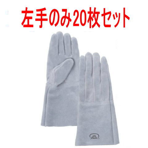 左手 床袖皮手袋 20枚セット(20人分) ガス溶接 革手袋 No 4B ガス溶断 溶接 5本指手袋 富士グローブ